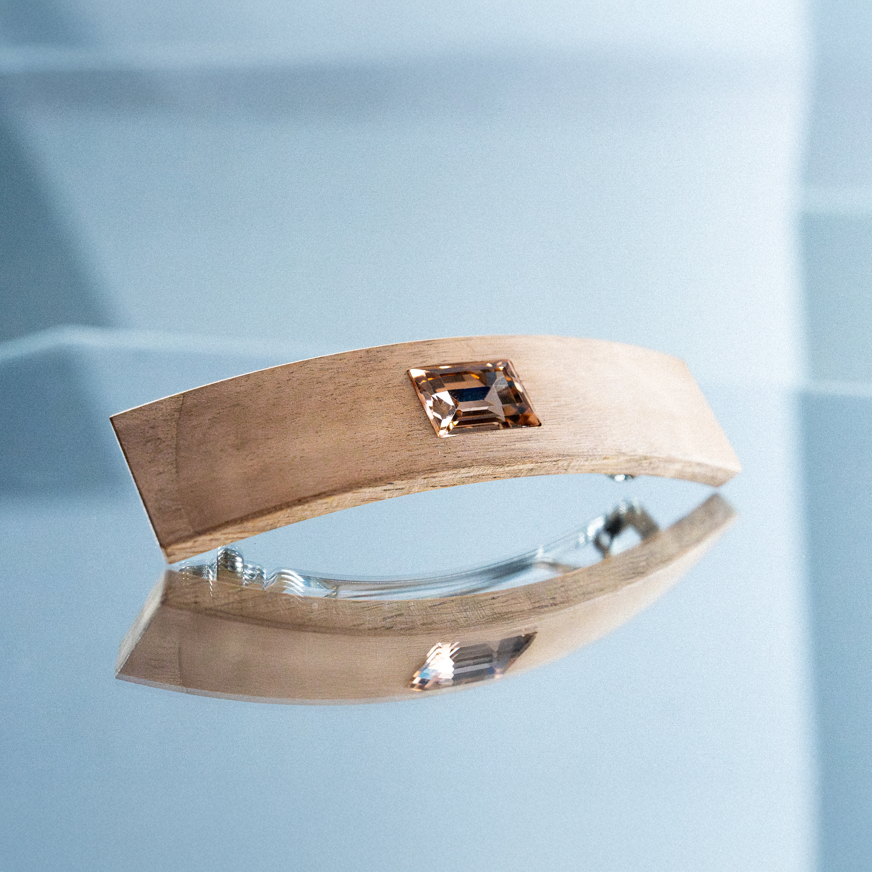 • mit Kristall im Baguette-Schliff in der Farbe champagne diamond